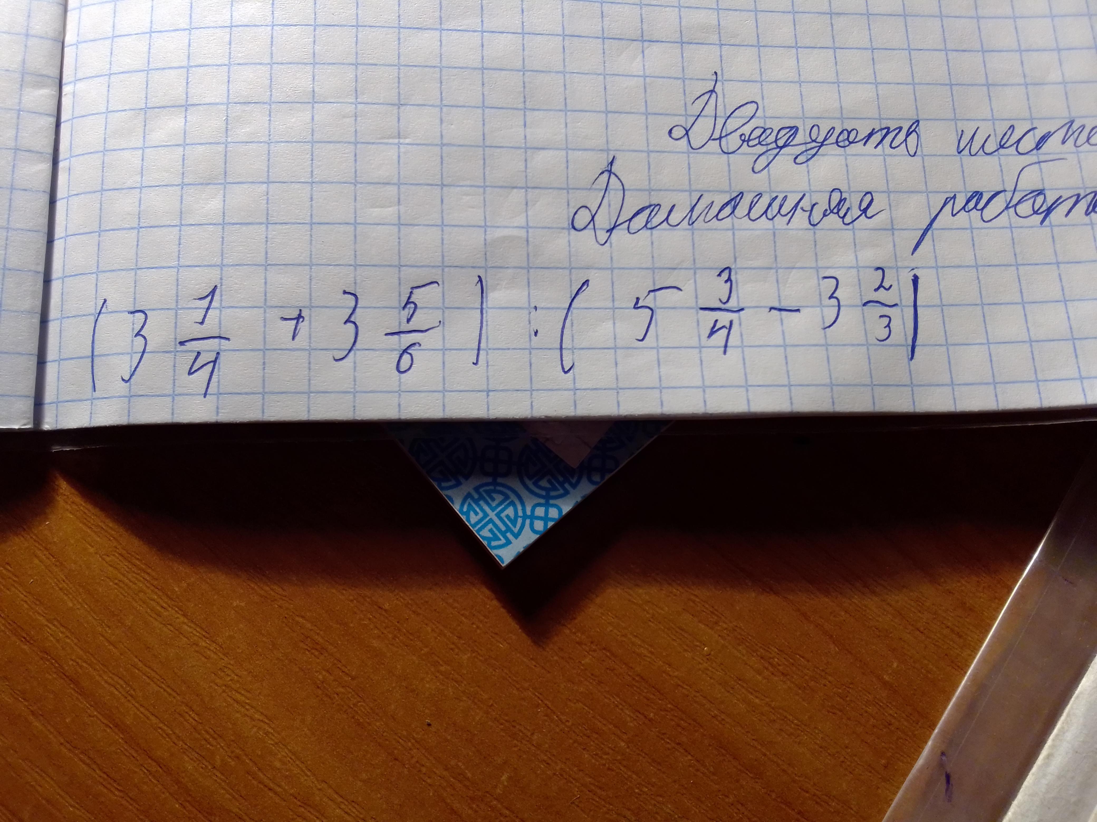 (3 1/4 +3 5/6)÷(5 3/4 -3 2/3)=(3 3/12 +3 10/12)÷(5 9/12 -3 8/12)=6 13/12 ÷2 1/12=85/12 •12/25=17/5=3 2/5=3,4