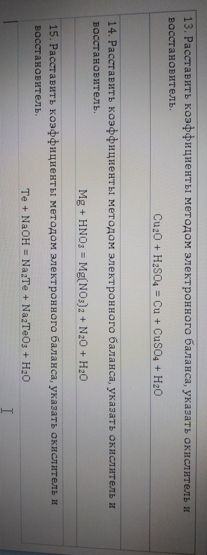 окислитель Te(0) + 2 e → Te(-2) восстанавливается