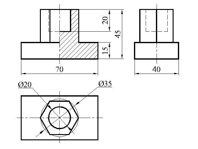 Главный вид (спереди) заменила на 1/2 вида и 1/2 фронтального разреза, т.к. размеры не указывают по невидимым линиям.