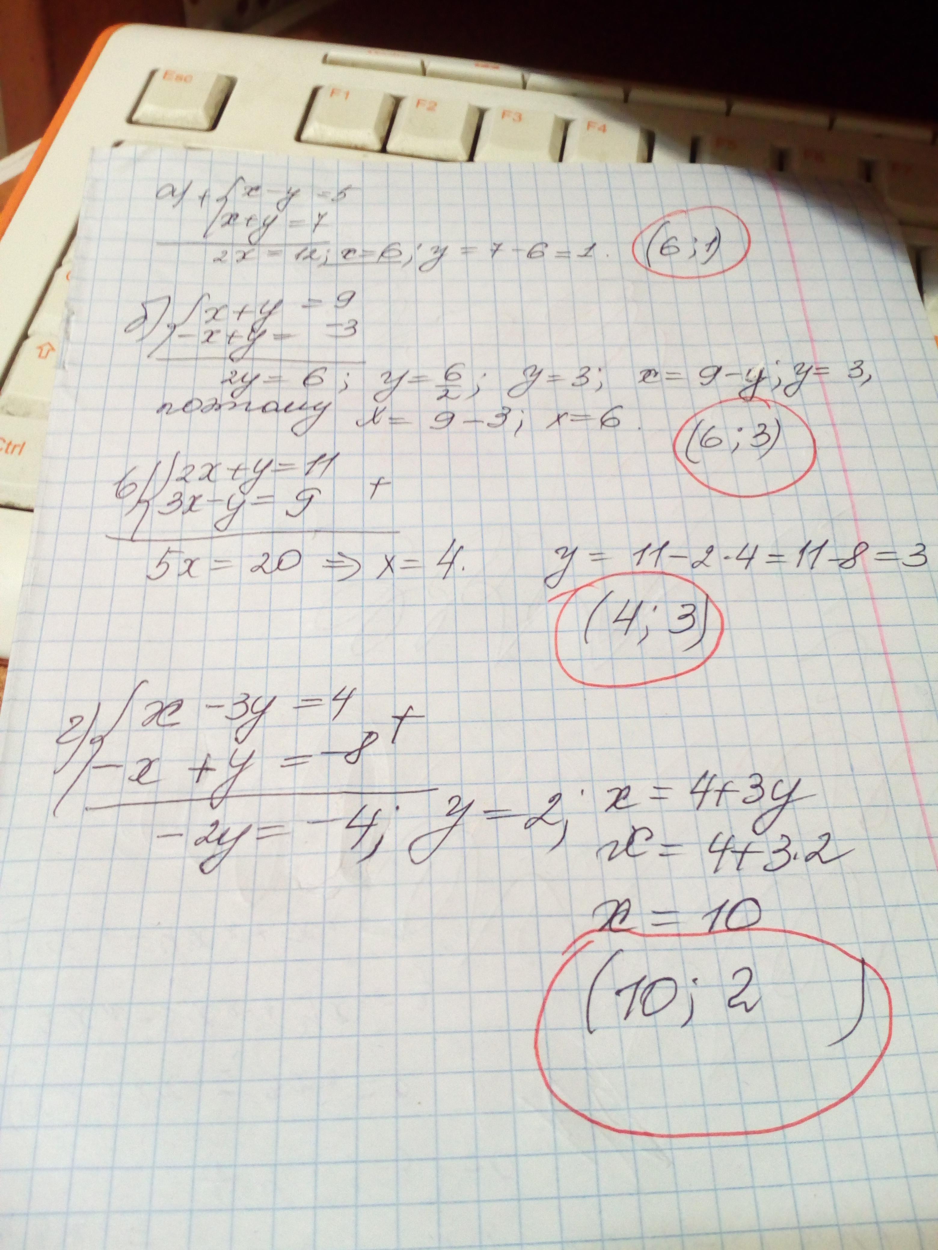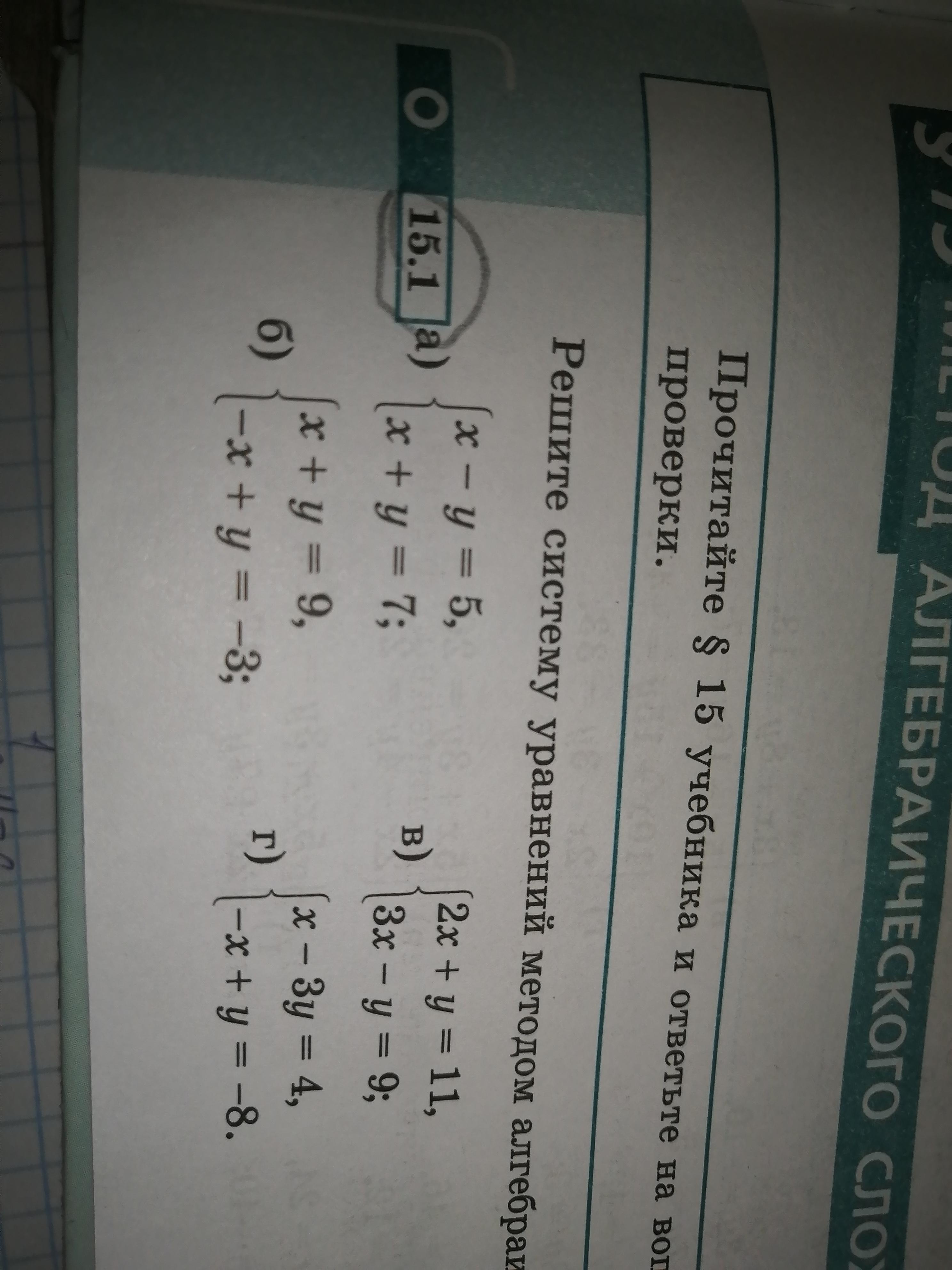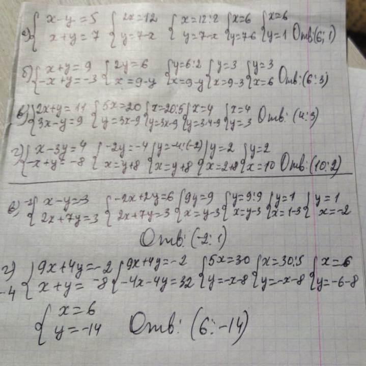 Решите системы уравнений методом алгебраического сражения.