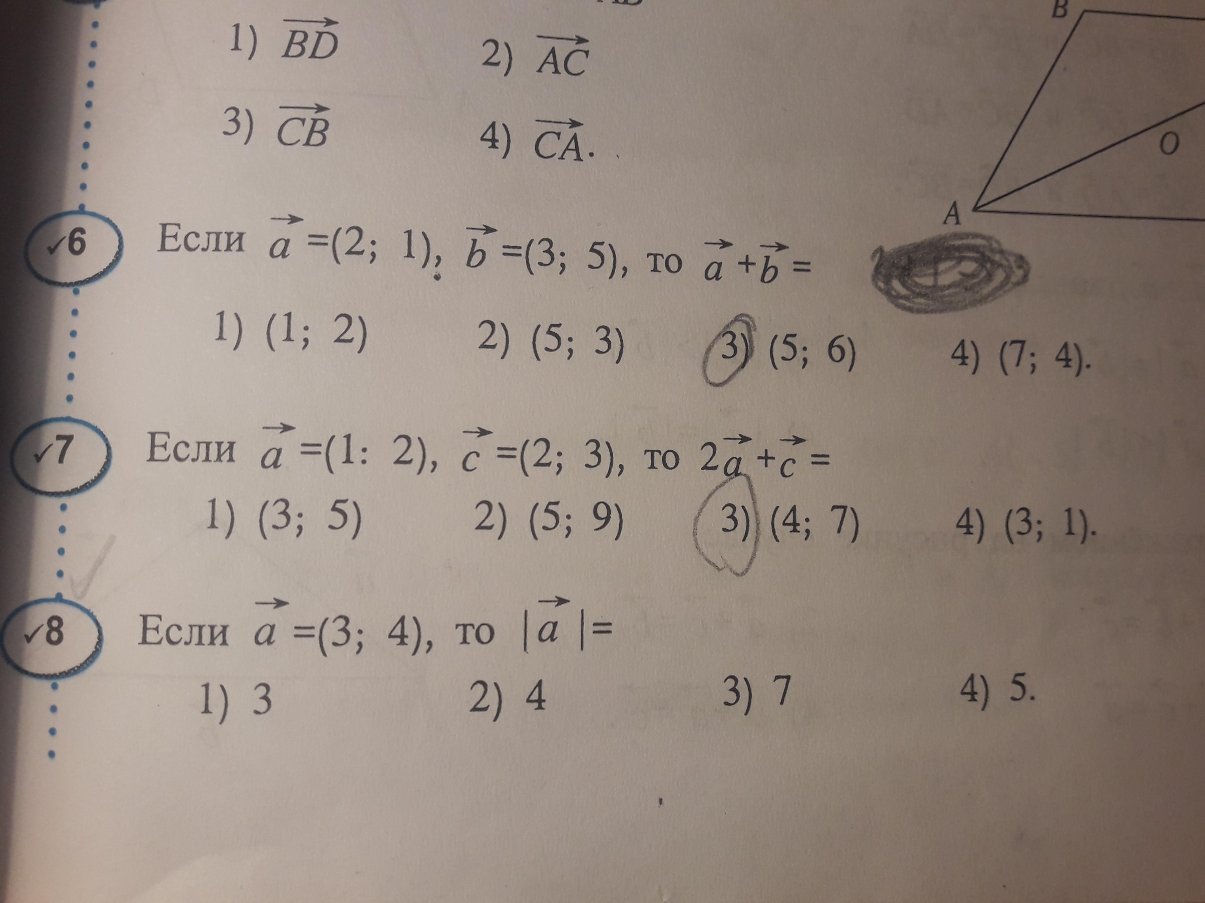 8)|a|=под корнем(x1)квадрат+(у1)квадрат=под корнем (3)квад+(4)квад=под корнем 25=5