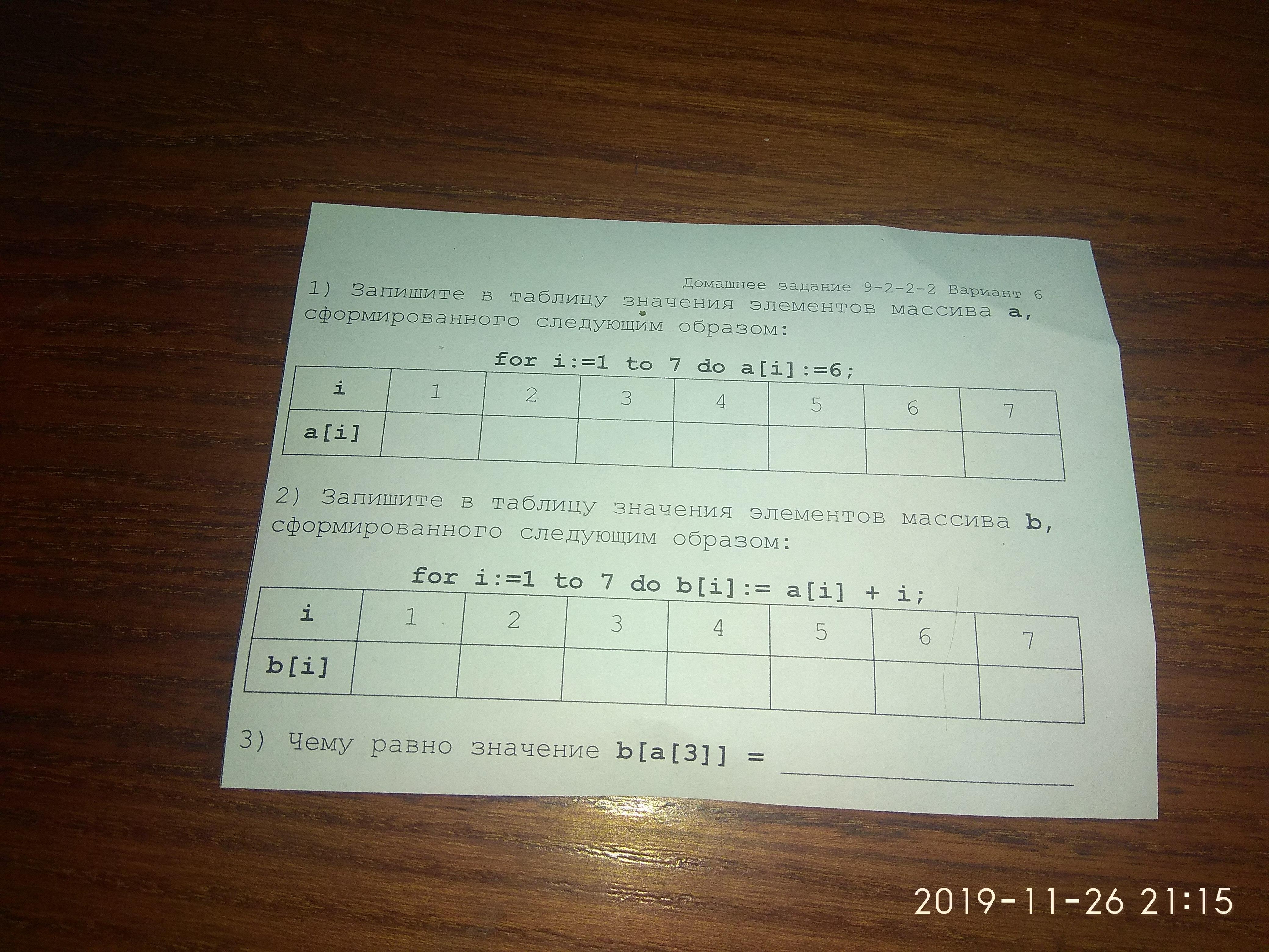 Запишите в таблицу значение элементов массива а, сформированного следующим образом