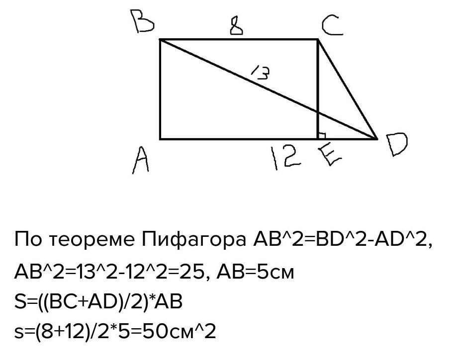 Большая диагональ прямоугольной трапеции равна 13 см, а