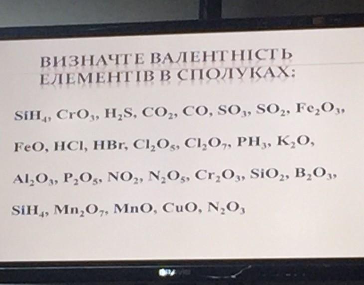 Si(IV)H(I)4, Cr(VI)O(II)3, H(I)2S(II), C(IV)O(II)2, C(II)O(II), S(VI)O(II)3, S(IV)O(II)2, Fe(III)2O(II)3, Fe(II)O(II), H(I)Cl(I), H(I)Br(I), Cl(V)2O(II)5, C(VII)2O(II)7, P(III)H(I)3, K(I)2O(II), Al(III)2O(II)3, P(V)2O(II)5, N(IV)O(II)2, N(V)2O(II)5, Cr(III)2O(II)3, Si(IV)O(II)2, B(III)2O(II)3, Si(IV)H(I)4, Mn(II)O(II), Cu(II)O(II), N(III)2O(II)3