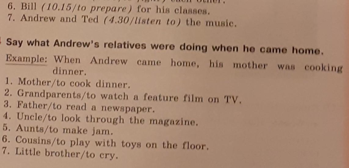 2) When Andrew came home, his grandparents were watching a feature film on TV.