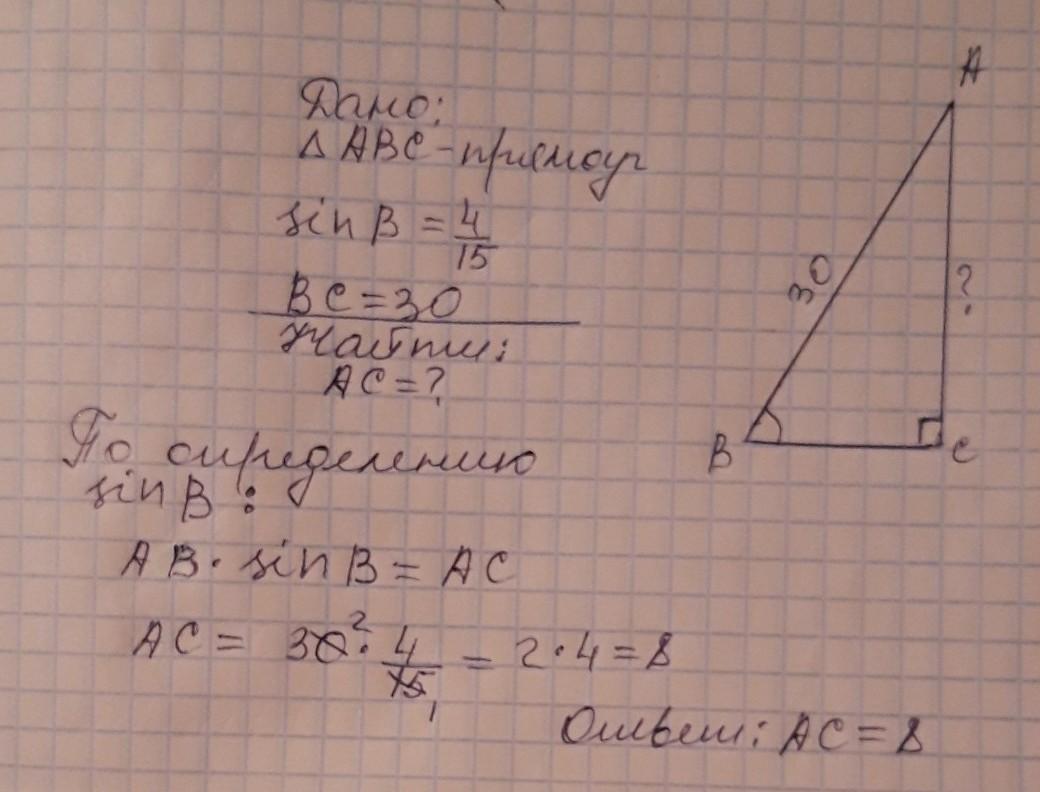 По определению синус есть отношение противолежащего катета к гепотинузе.