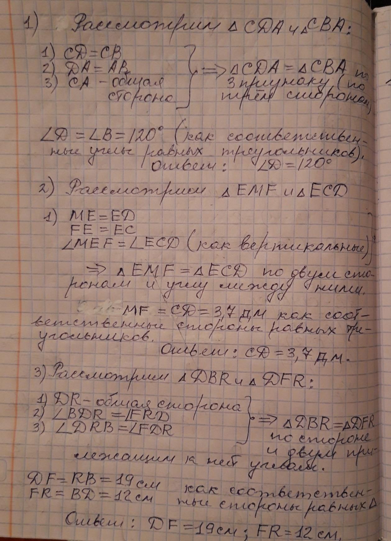 Надеюсь понятно, если что треугольники равны по 3 признаку равенства