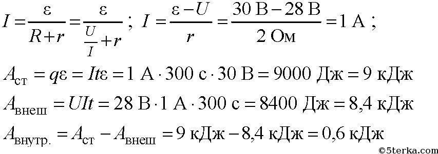 Ответ:I=1A;Aст=9кДж;Авнеш=8,4кДж;Авнутр=0,6кДж.