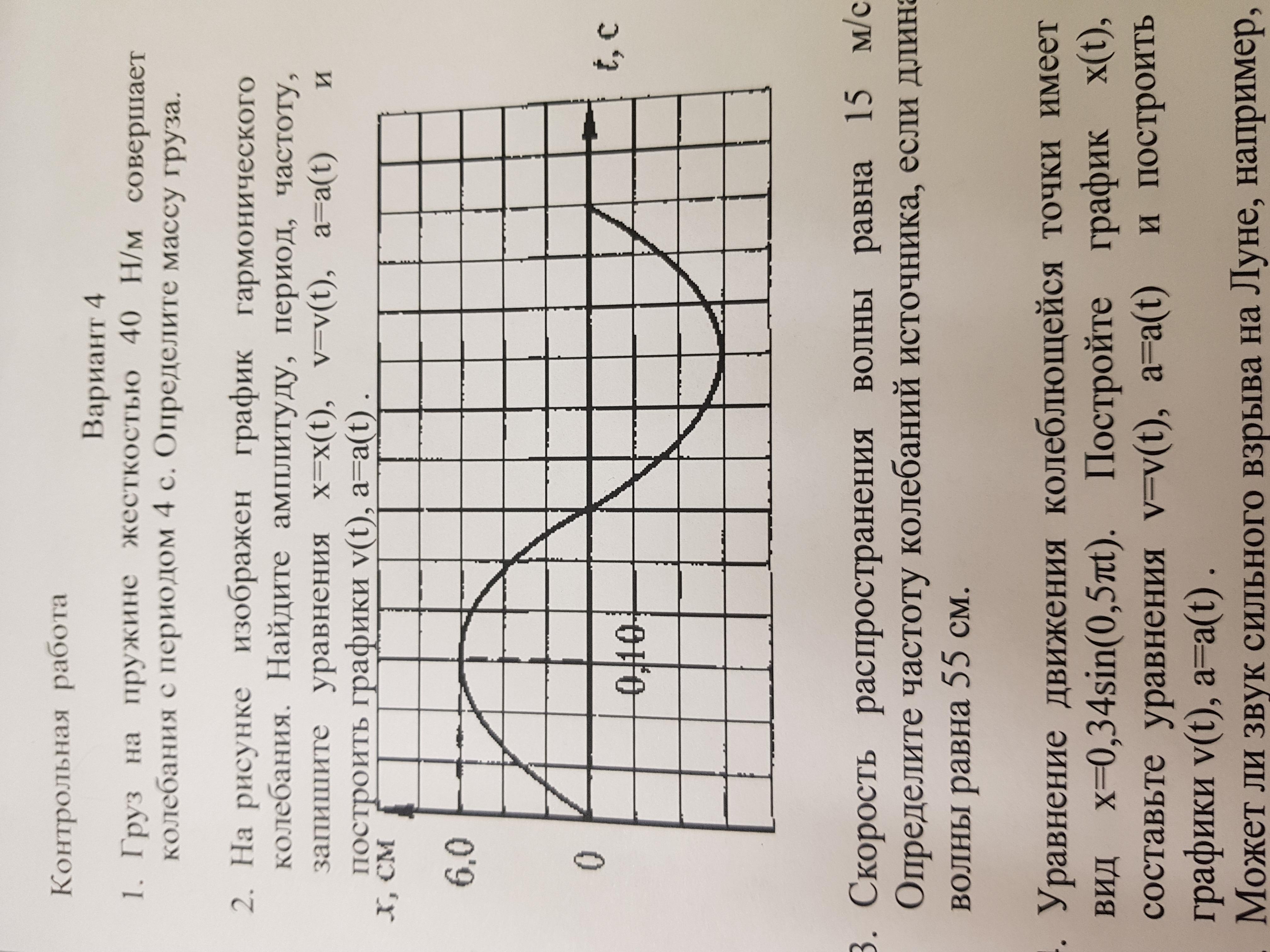 На рисунке изображена график гармоничного колебания. Найдите амплитуду, период, частоту.