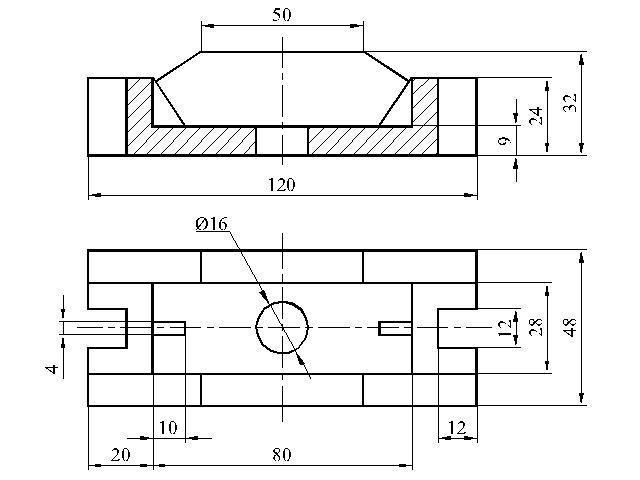 На первом чертеже сделала полностью фронтальный разрез, но это не совсем верно, а вот на втором чертеже главный вид заменила 1/2 вида + 1/2 фронтального разреза - видно исполнение детали и снаружи и внутри.
