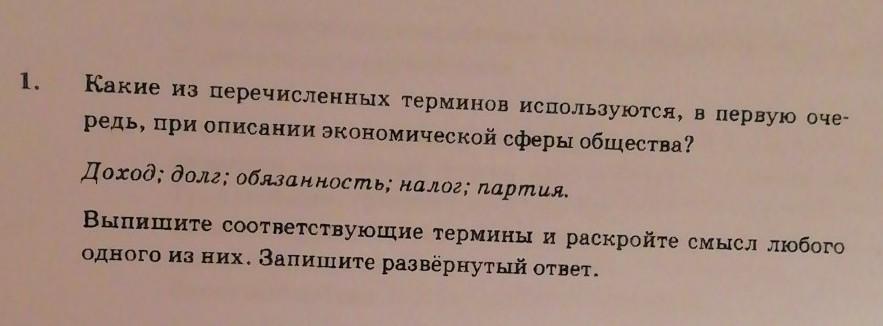 Выпишите соответствующие термины и раскройте смысл любого одного из них. Запишите развёрнутый ответ.