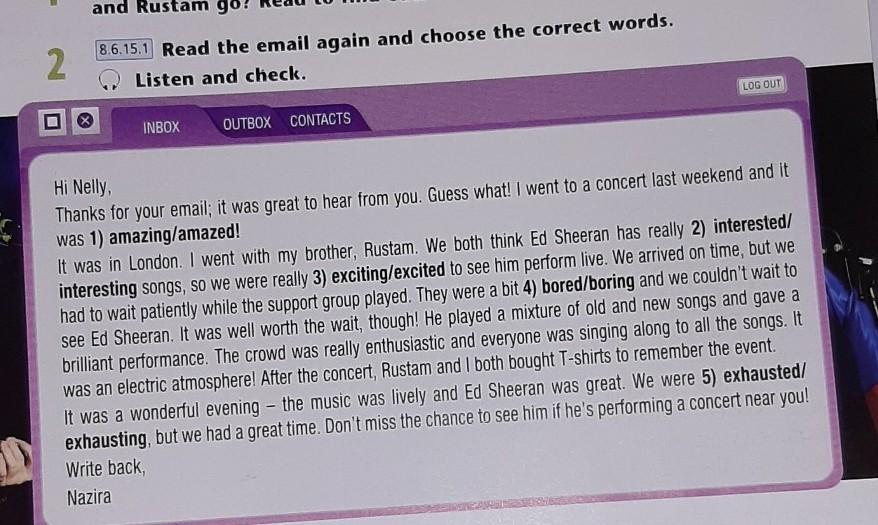 1. amazing 2. interesting 3. excited 4. boring 5. exhausted
