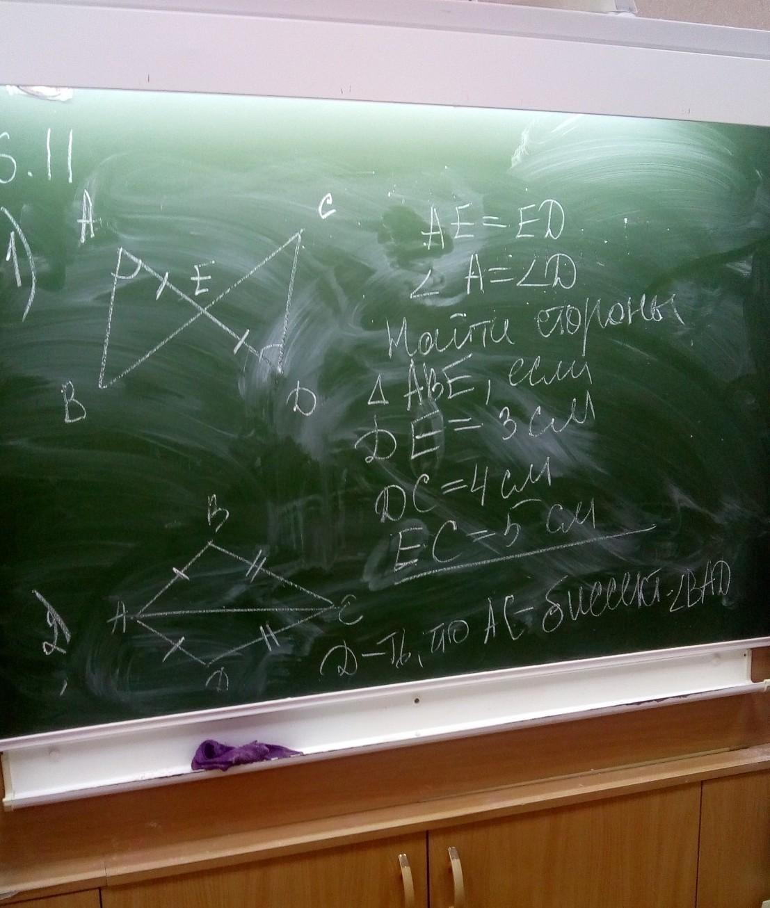 Углы АЕВ=СЕД (вертикальные). Значит тектоник равны по второму признаку, стороне и двум прилежащим углам. А значит и стороны равны тем что даны
