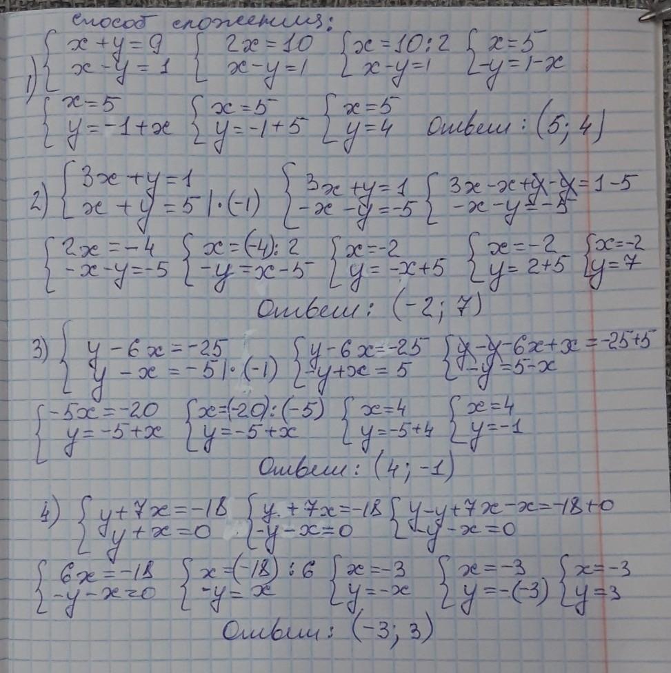 2)способом алгебраического сложения.