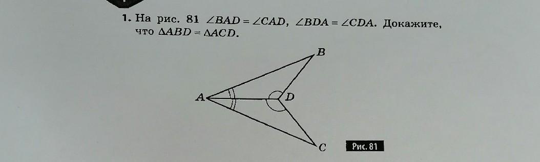 Данные треугольники равны по стороне и двум , прилежащим к ней углам (AD-общая сторона)