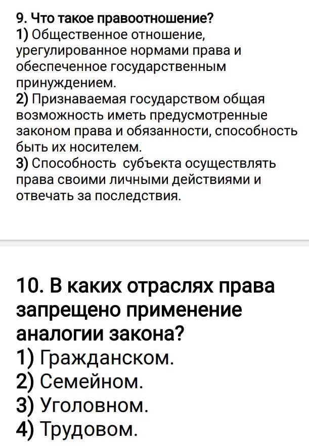 9. Общественное отношение, урегулированное нормами права и обеспеченное государственным принуждением (1)
