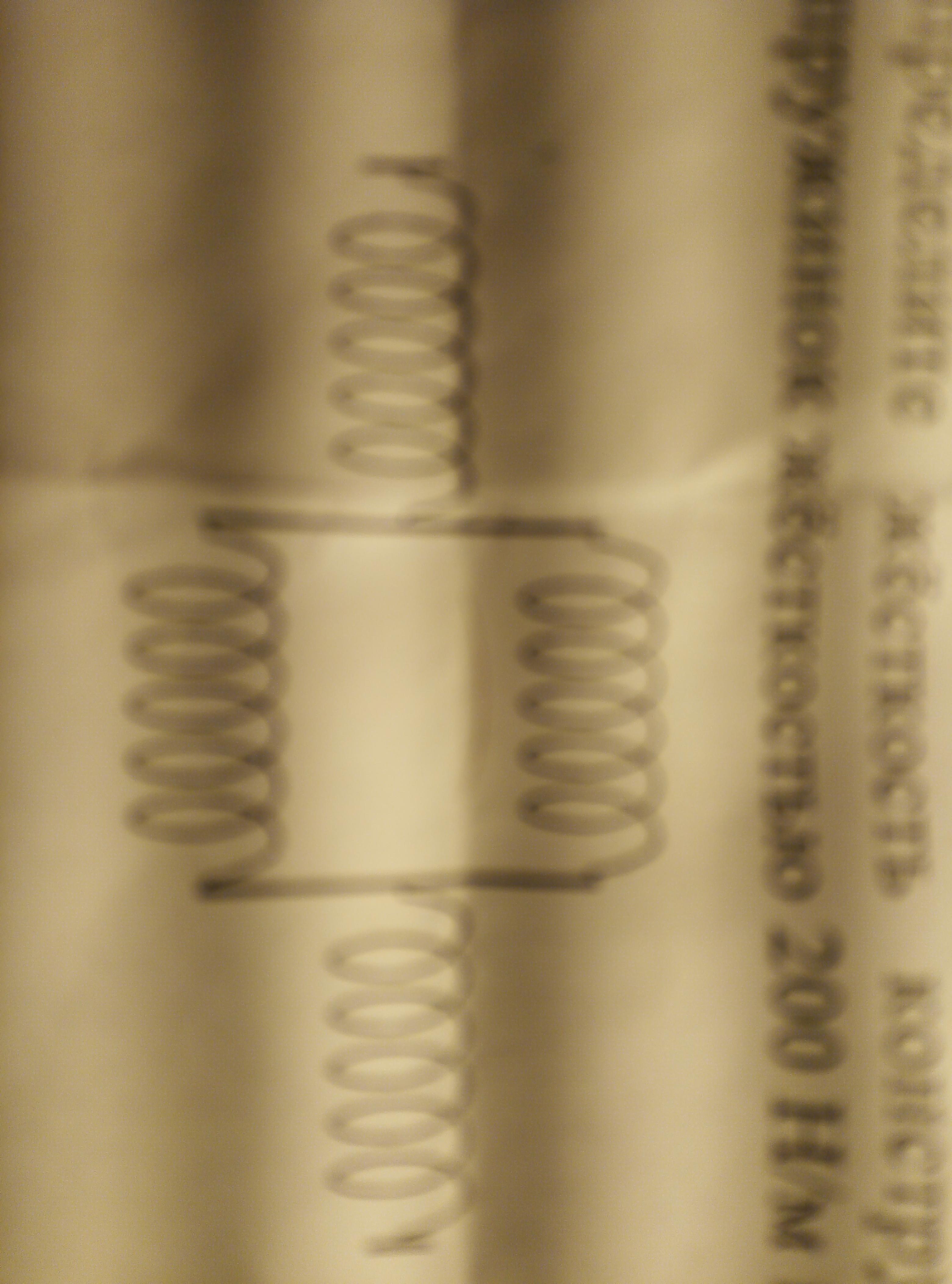 Определите жёсткость конструкции, составленной из четырёх одинаковых пружинок жёсткостью 200Н/м каждая