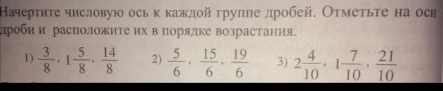 Начертите числовую ось к каждой группе дробей. Отметьте на оси