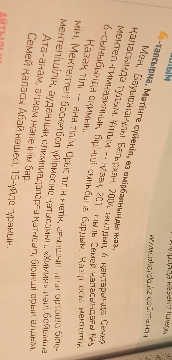 Ата-анам,ағам және әпкем бар.Жітіқара қаласы 12- үйде тұрамын.