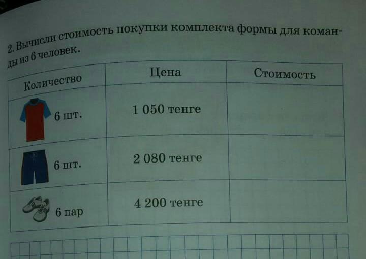 Ответ: 43980 тенге заплатили всего за форму на 6 человек.