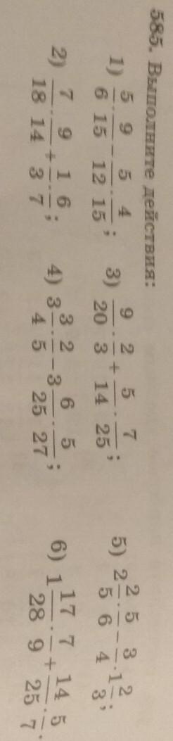 первое действие будет 5/6*9/15 эти дроби можно сократить: