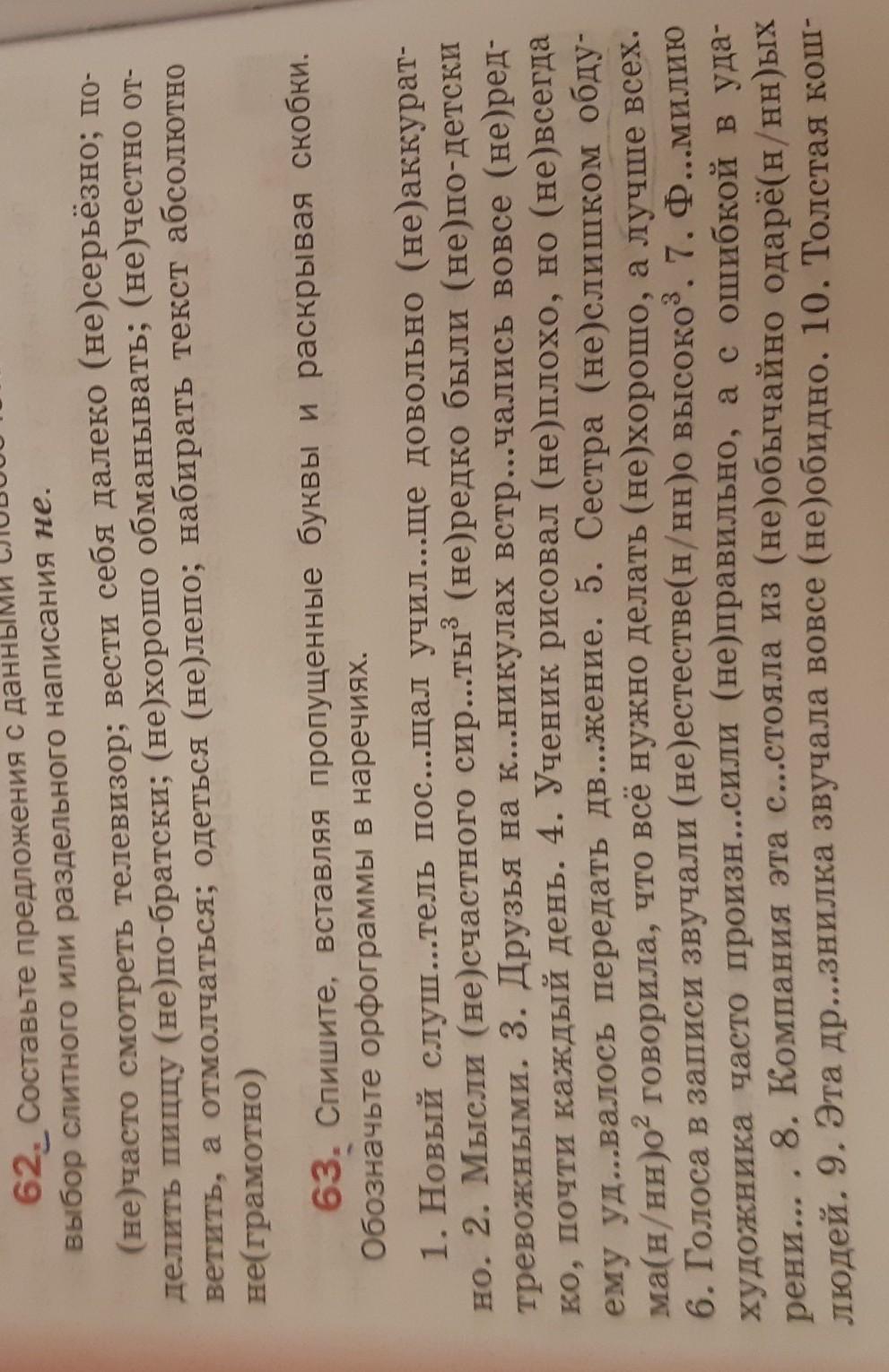 продолжение 63: 10. Толстая кошка (не)хотя спрыгнула с дивана и (не)торопливо направилась к двери. 11. Я (не)чаянно отхлебнул (не)остывшего чаю и обж...г язык.