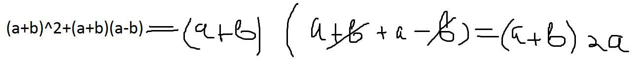 (a+b)²+(a+b)(a-b) = а²+2ab+b²+a²-ab+ab-b² = 2a²+2ab = 2a(a+b)