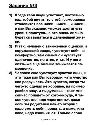 Выпишите 5 причин, по которым самооценка человека становится заниженной, охарактеризуйте полно каждую.