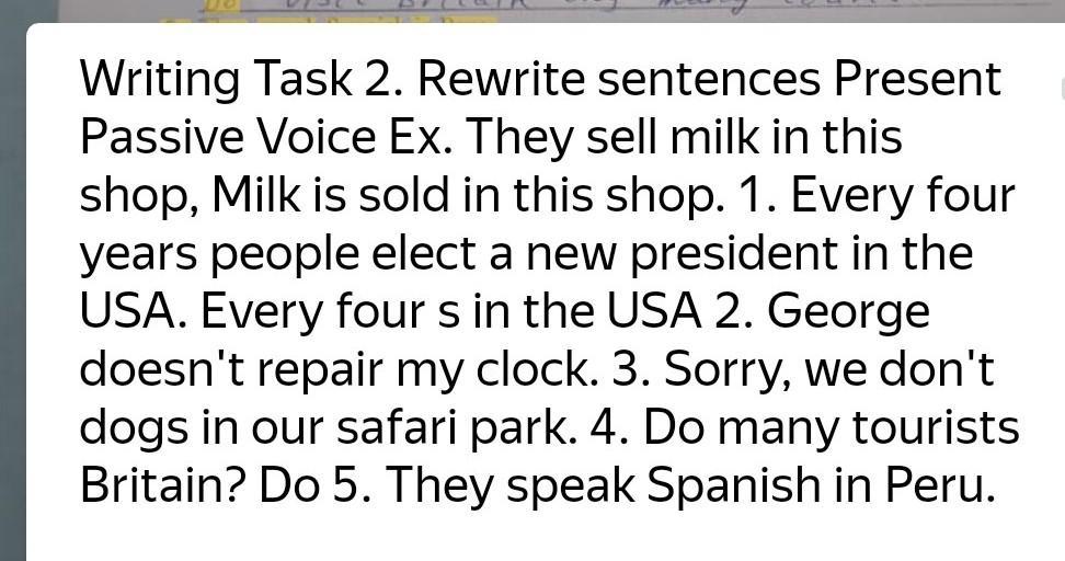 1Каждые 4 года в США меняется призидент.2Джордж не ремонтирует мои часы.3Извините,с собаками нельзя в наш сафари парк.