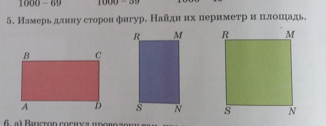 1. Измерь линейкой длину и ширину всех фигур, для удобства напиши над сторонами результат измерения.