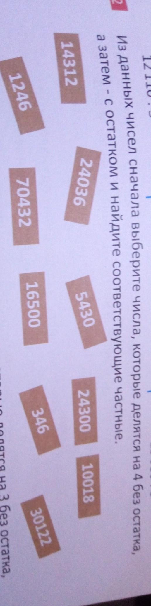 из данных чисел сначала выберите числа которые делятся на 4 без остатка а зачем с остатком и найдите соответствующий частное