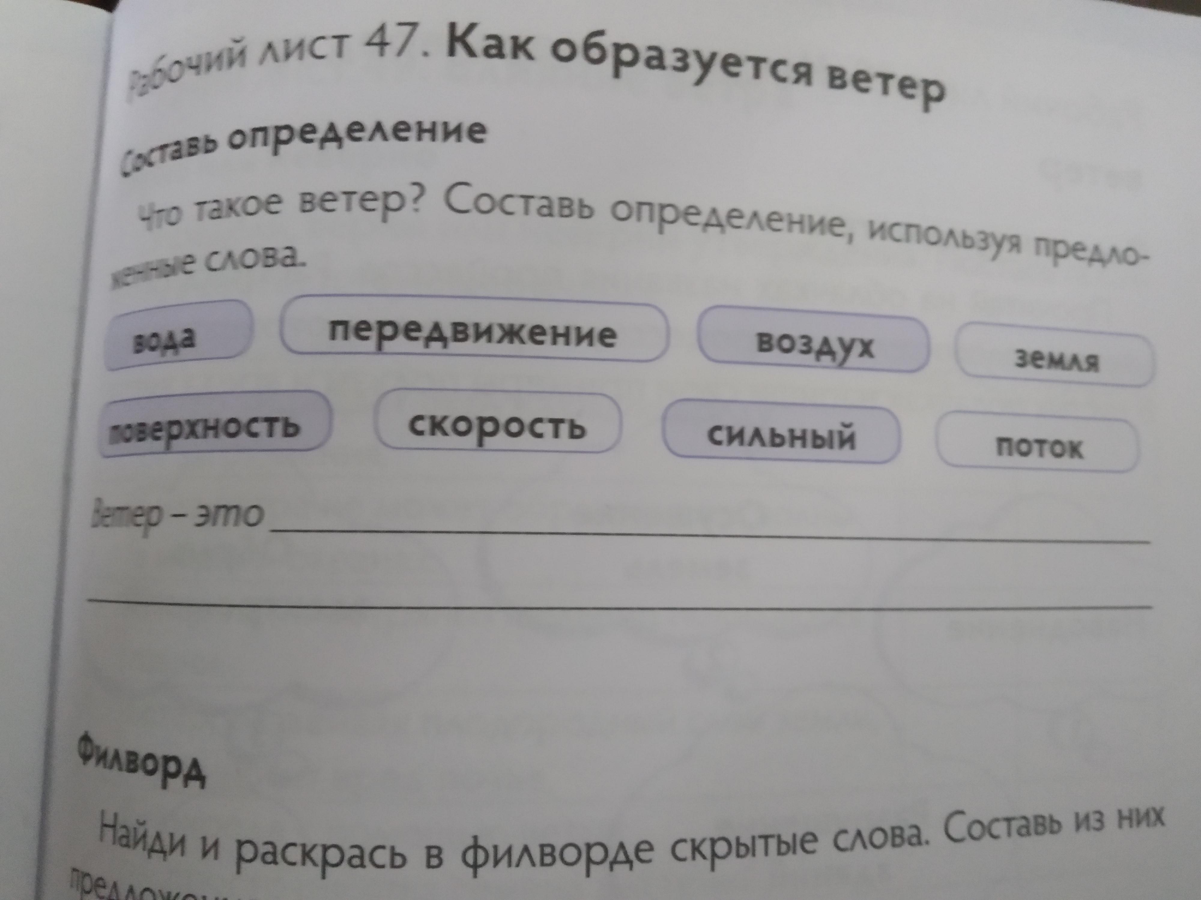 Ветер это-воздух, который может быть с передвижением, сильным или лёгким. Когда ветер сильно дует поверхность земли начинает маленькими кусочками улетать с ветром.