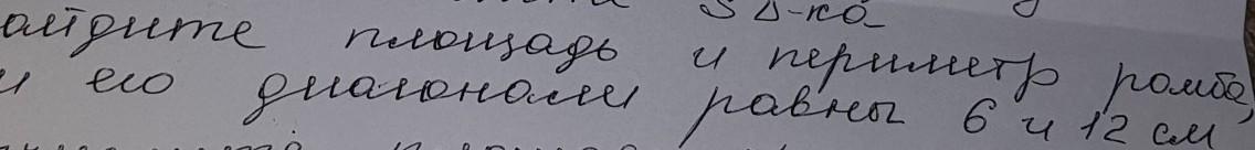 Ответ: периметр ромба 12√5 см, площадь ромба 9 см².