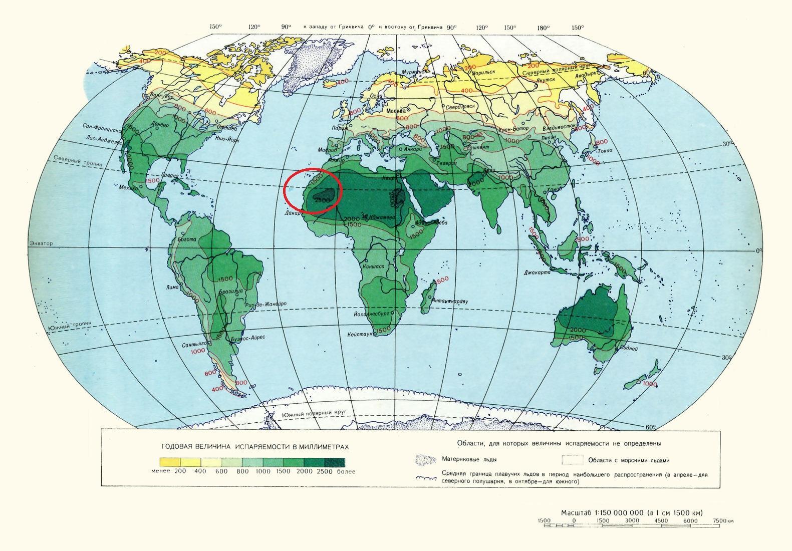 Испаряемость в Мавритании около 1500 мм.Чем дальше от океана, тем больше.