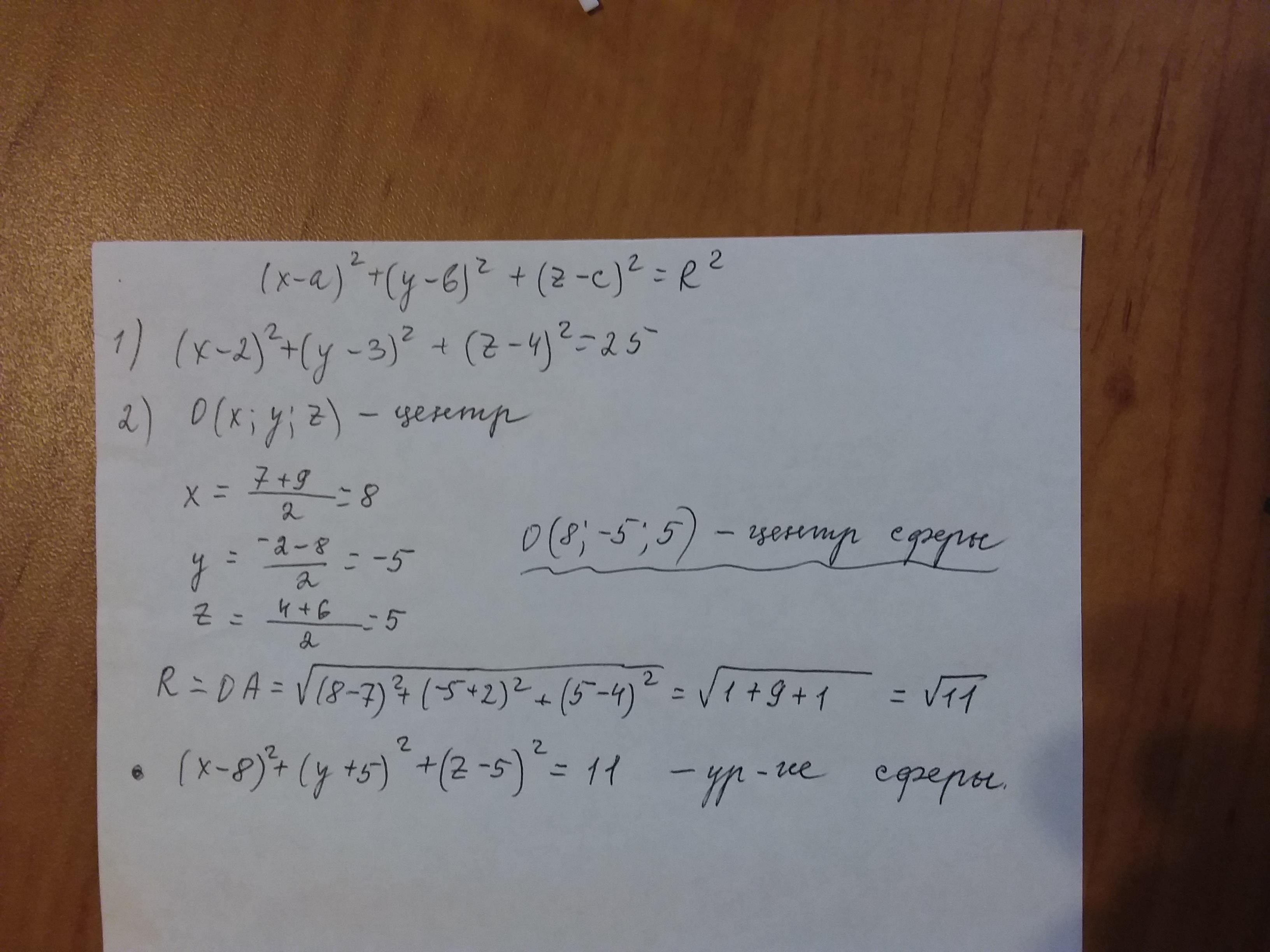 Помогите пожалуйста, УРАВНЕНИЕ СФЕРы!! ПОЖАЛУЙСТА. Номера во вложении. Заранее спасибо