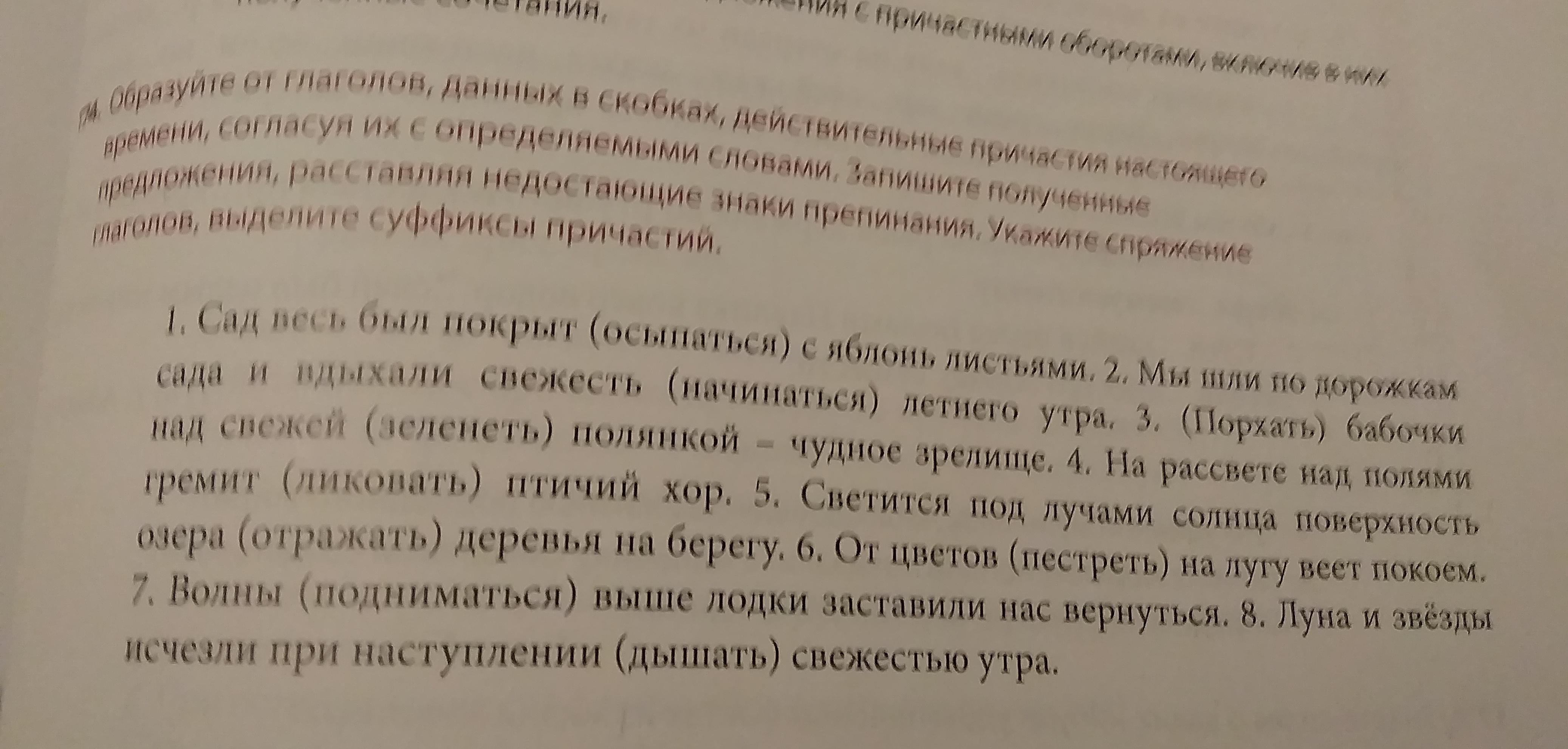 Осыпающимеся, начинающегося, порхающие, зеленеющей, ликующий, отражающая, пестреющих, поднимающиеся, дышещего