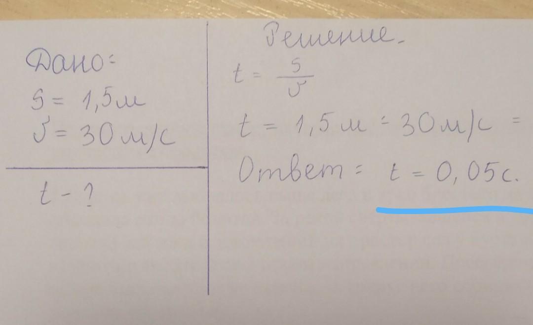 За какое время тело, стоящие на транспортерной ленте переместится на 1,5 м, если её скорость движения составляет 30м/с? При решении задачи сделать перевод см/с в м/с