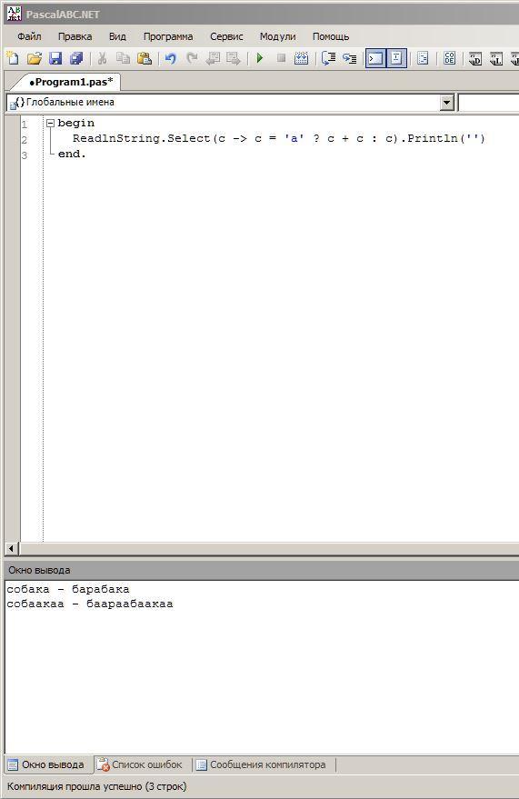 ReadlnString.Select(c -> c = 'а' ? c + c : c).Println('')