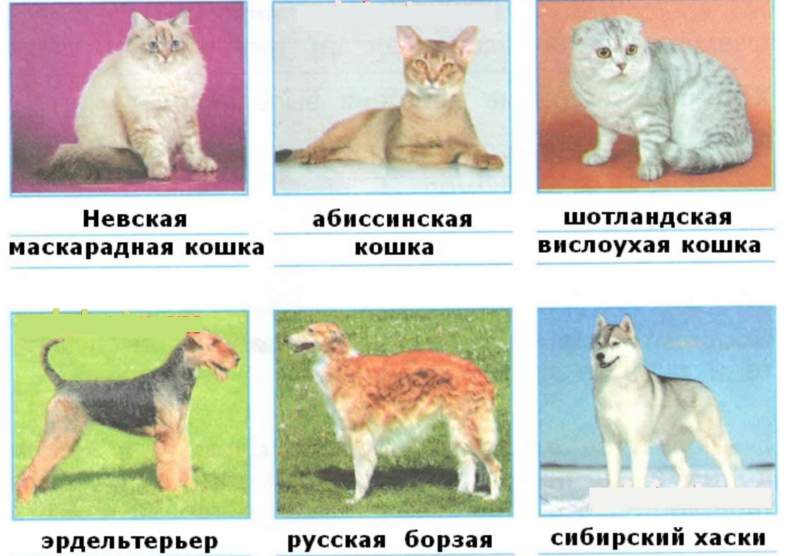 узнай породы кошек и собак по фотографиям. Подпишите названия. Можешь воспользоваться словарём для справок. Для справок:сибирский хаски, абиссинская кошка, русская борзая, невская маскарадная кошка, эрдертерьер, шотландская вислоухая кошка