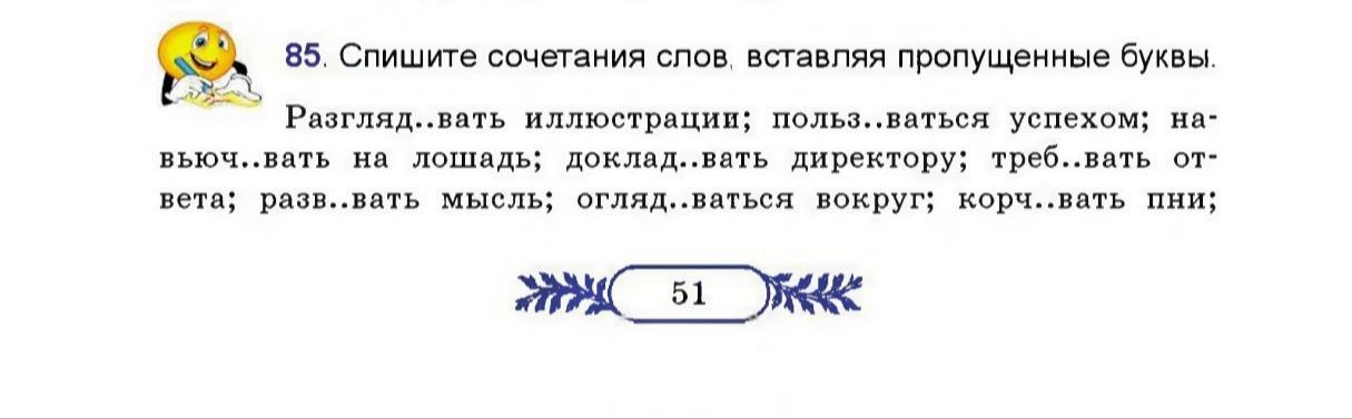 Разглядывать,иллюстрация,пользоваться успехом,навьючивать на лошадь,докладывать директору,требовать ответа,развивать мысль,оглядываться вокруг,корчевать пни
