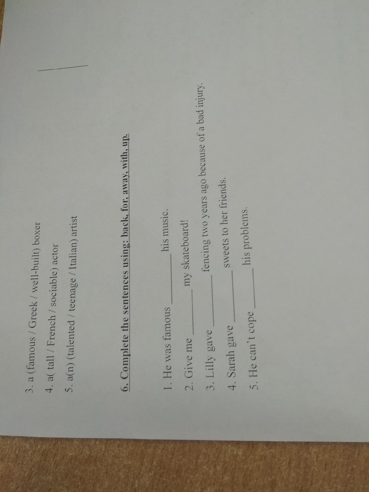Ответ:1)for 2)back 3)up 4)away 5)with
