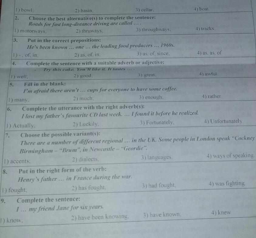 Ответ:2)3 3)3 4)2 5)3 6)2 7)2 8)4 9)1