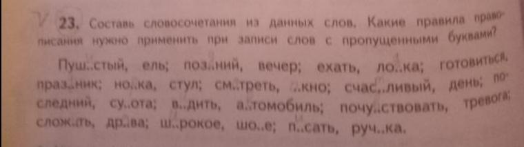 Пушистая ель,поздний вечер,ехать на лодке,готовиться к празднику,ножка стула,смотреть в окно,счастливый день,последняя суббота,водить автомобиль,почувствовал тревогу,сложить дрова,широкое шоссе,писать ручкой