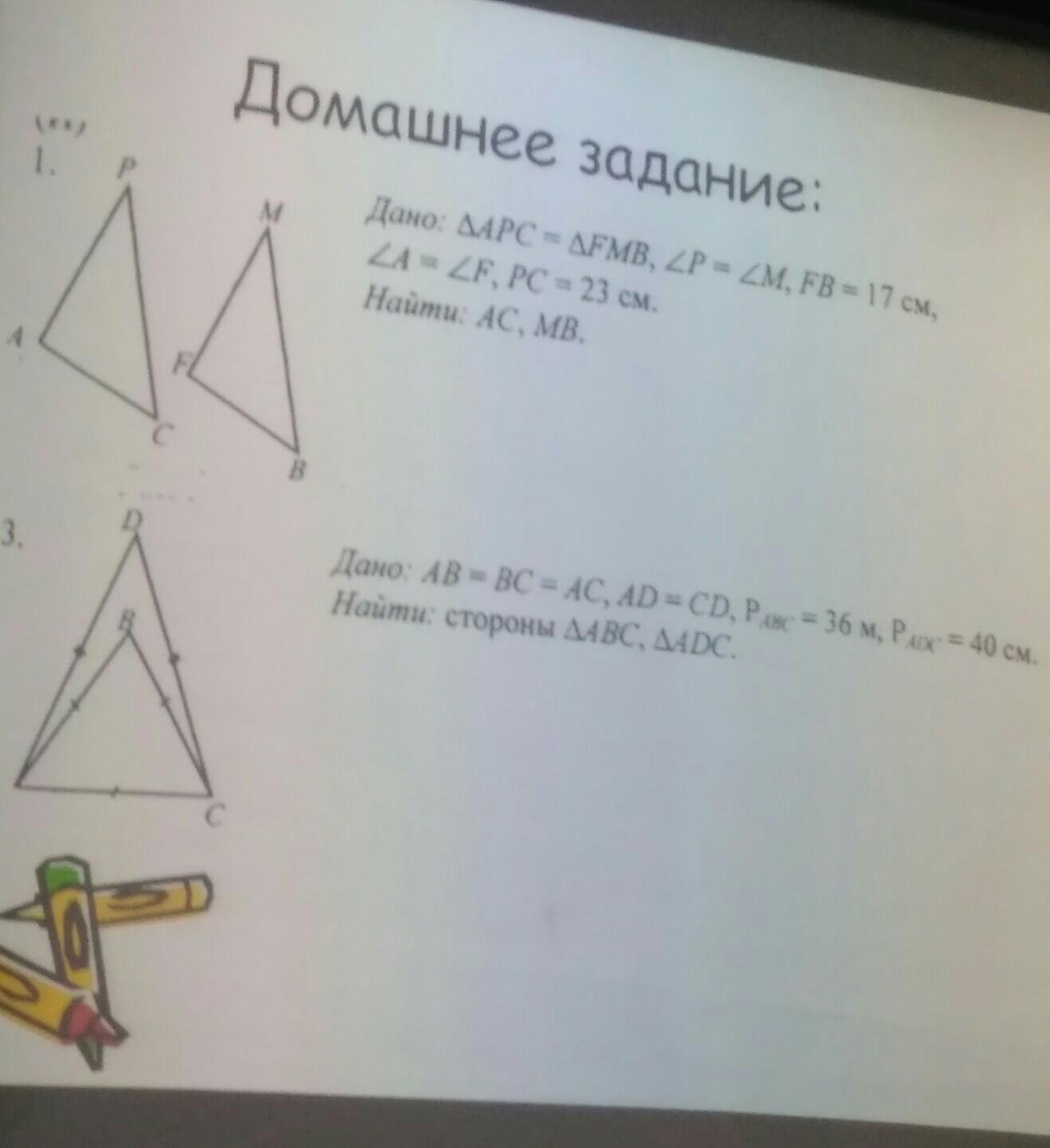 1)т.к. треугольники равны, то и стороны соответственно равны
