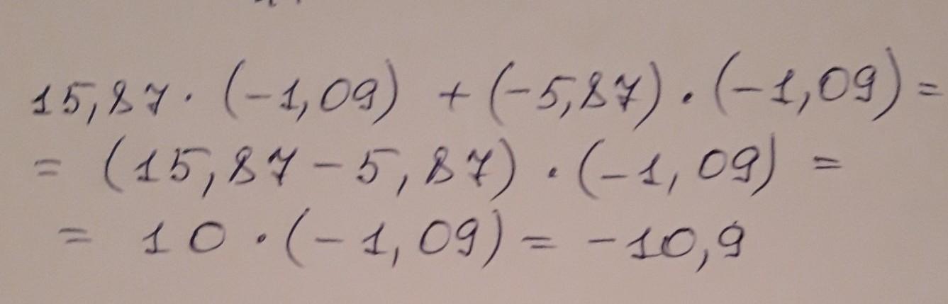 (-1.09)(15.87+(-5.87)) = (-1.09)(15.87-5.87) = -1.09•10 = -10.9