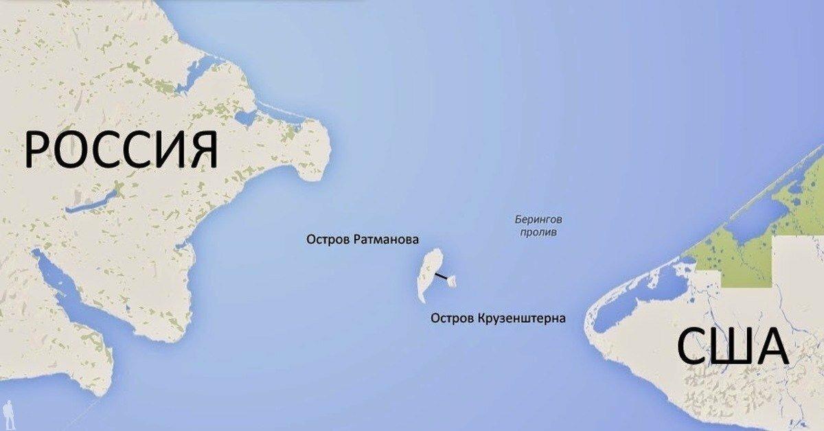 Одна из стран, со которой РФ имеет общую границу, является США. Напишите название пролива, по которому проходит граница.