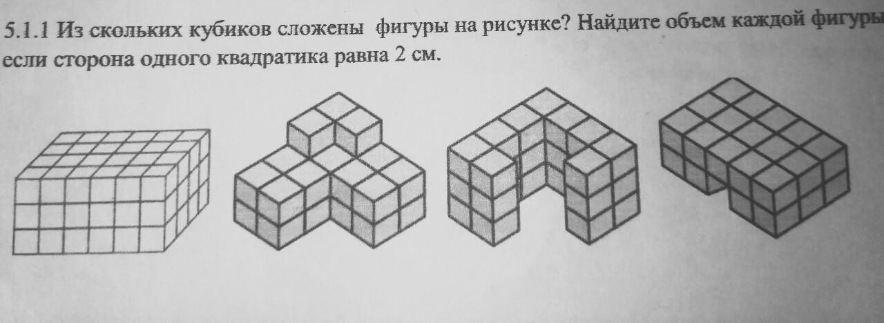 4. не зрозуміло чи в нижньому ряді посередині немає 1 кубика чи всього рядку, тому або 27 або 29 і об'єм або як в 2 і 3 або 29 * 2³ = 232см³