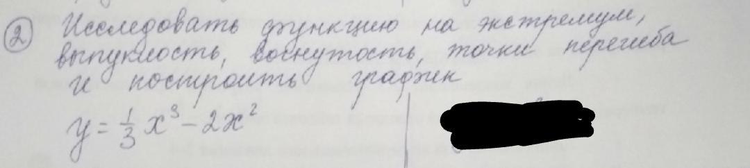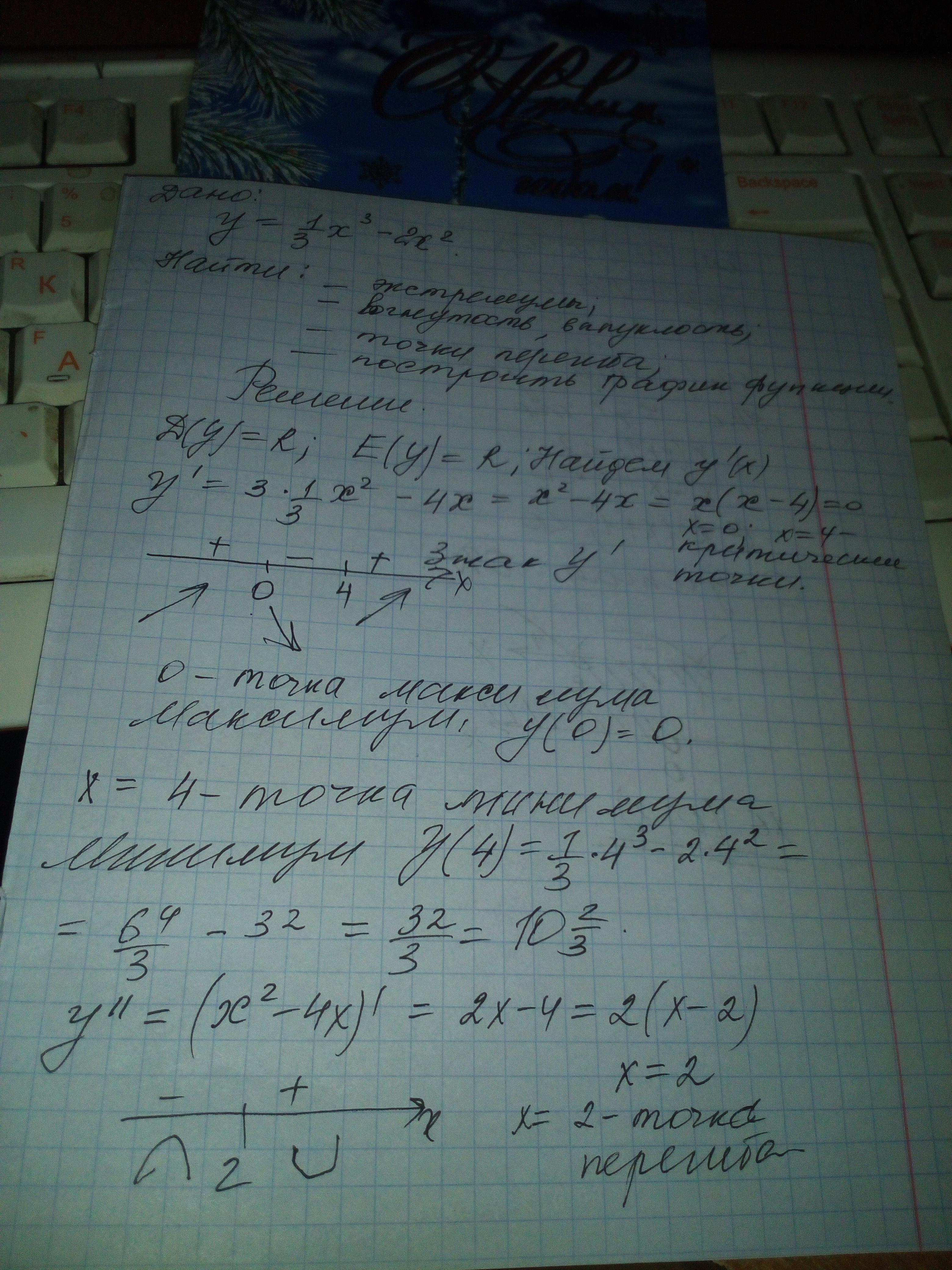 исследовать функцию на экстремум выпуклость вогнутость точки перегиба и построить график y=(1/3)x^3-2x^2