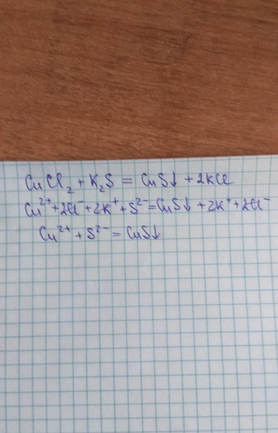 Cu²⁺ + 2Cl⁻ + 2K⁺ + S²⁻ = CuS↓ + 2K⁺ + 2Cl⁻