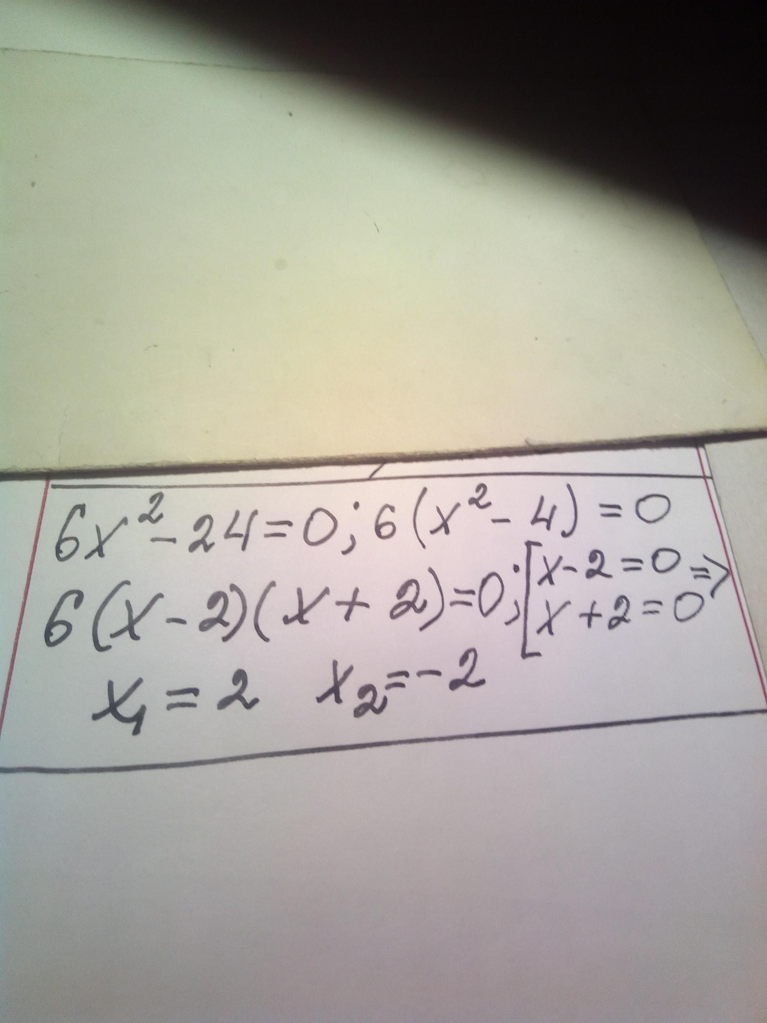 Ответ: 6*х^2=24 или х^2=4 или х1=2, х2=-2.